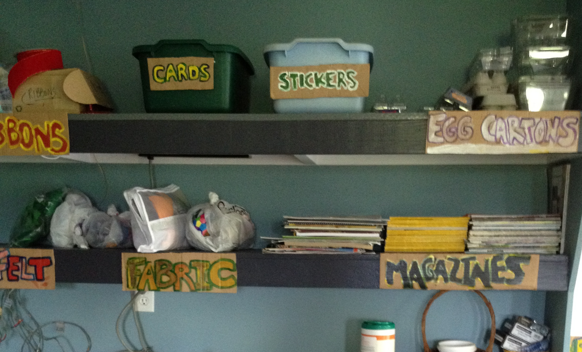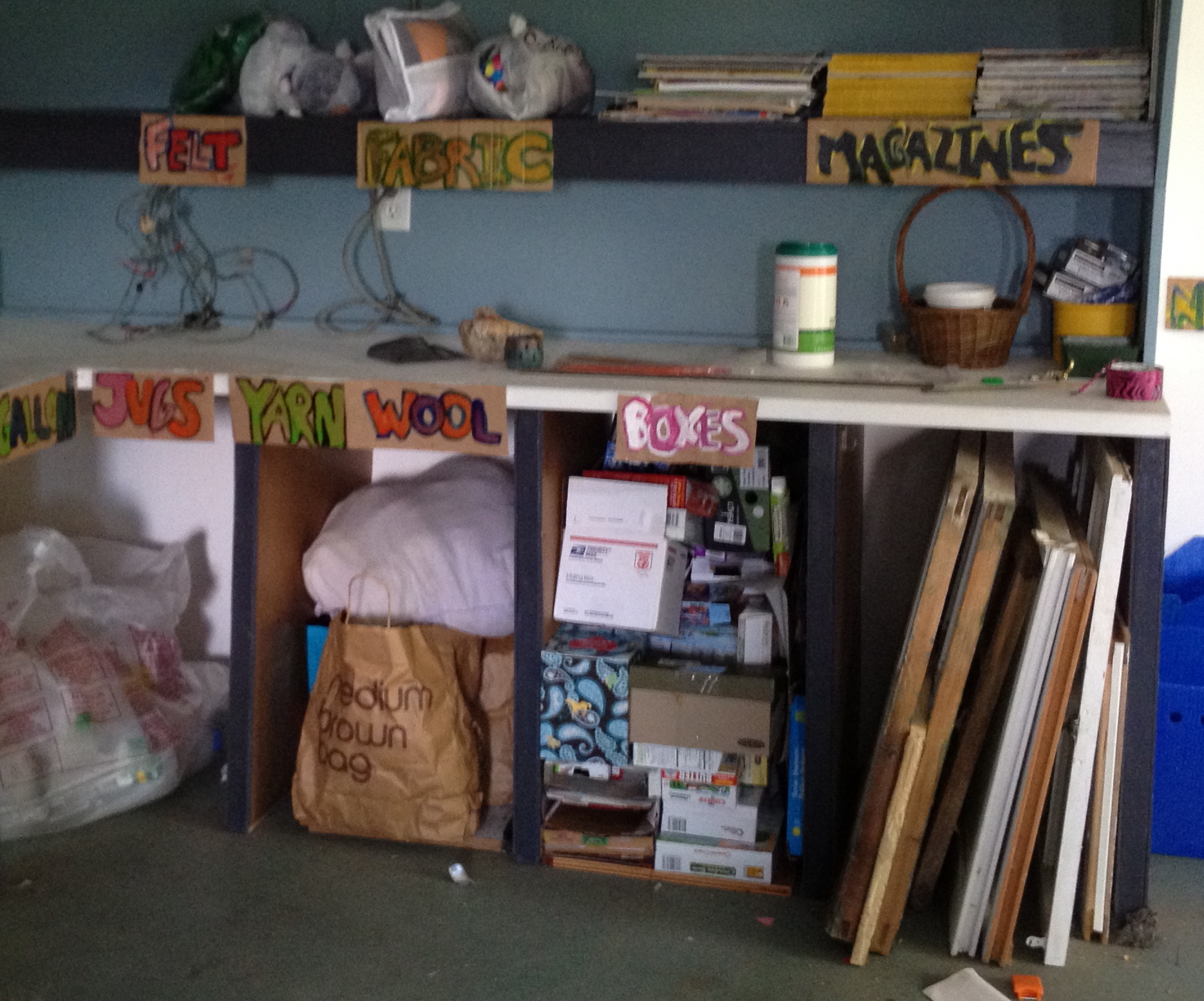 I use recycled, reused and materials from Nature as much as possible. I collect materials in my garage, and what I have will help determine what an art project becomes.